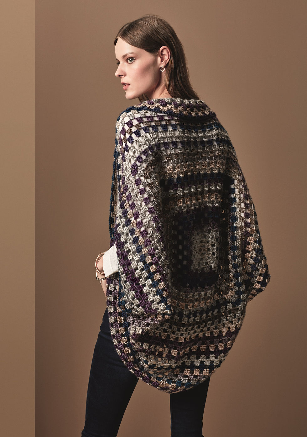 This is truly the simplest, yet most effective crochet pattern you will ever see. It is basically just one big granny square sewn in half. The variegated Boho yarn gives it the most fabulous striped effect in these beautiful shades. Mix it up a bit with one of our new Boho shades to make it your own.